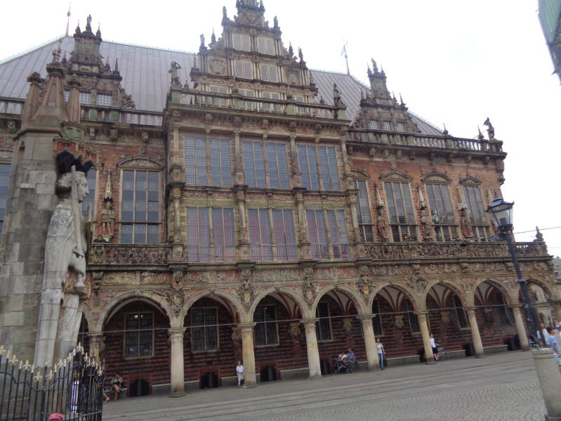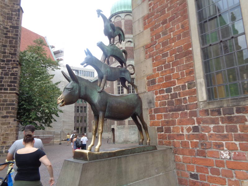 Vandaag werd de camper om haf tien gestart en zijn we naar de Hanzestad Bremen gereden. Om op de camperplaats te komen moest je een stuk door de milieuzone rijden in Bremen. De gemeente Bremen is zo vriendelijk geweest om vrijstelling te geven aan campers zonder milieusticker, daarbij moet je wel een door hun aangeven route rijden wat we dan ook uiteraard gedaan hebben. We waren vroeg op de camperplaats waar nog plaats genoeg was. Voordeel van deze camperplaats is dat hij dicht bij de altstad van Bremen ligt en je het dus lopend af kunt. Dat hebben we dan ook gedaan. Naaste de camperplaats loopt een voetpad dat je naar een voet/fietspontje brengt en waarmee je vervolgens de Wezer over steekt. Dan is het nog gewoon een kwestie van de rivier volgen en als eerste kom je dan in Schnoor terecht, het oudste stadsdeel van Bremen. Het bestaat uit kleine vissershuisjes welke aan een wir war van smalle steegjes liggen. In de typische vakwerkhuisjes zijn nu vaak winkeltjes gevestigd. Je kunt er dan ook gezellig ronddwalen. Als je wat verder loopt kom je in het centrum van de stad terecht waar we een paar uur hebben rondgewandeld om vervolgens naar het marktplein te lopen. Het marktplein is "the place to be", hier vindt je het oude raadhuis, de Dom van Bremen en het Bremer parlementsgebouw. Op het plein staat ook het grote Rolandstandbeeld uit 1404, het symboliseert de stedelijke vrijheid. Druk was het ook bij het standbeeld van de Bremer stadsmuzikanten. Het beeld bestaat uit een ezel, hond, kat en een haan. Het is gebaseerd op een sprookje van de gebroeders Grimm. Het verhaal gaat de ronde dat als je beide poten van de ezel vasthoudt je een wens mag doen, in geen geval mag je maar een poot met de hand vasthouden want dan zou de ene ezel de andere ezel de hand reiken. Niet iedereen is bekend met deze legende want de meeste mensen die wij bij het beeld zagen streelden de snuit van de ezel in plaats van de poten . Op het marktplein vind je ook nog het Bremer loch waar muziek uitkomt van de Bremer muzikanten. Vanaf het marktplein zijn we de Böttcherstrasse inlopen. Het is een 110m lang verzamelkunstwerk uit de jaren twintig en je vindt er ateliers, musea, winkeltjes, leuke restaurantjes en tenslotte nog een carillon. Echt een aanrader vinden wij. Daarna zijn we naar de boulevard gelopen om vandaar uit weer langs de Wezer naar het voet/fietspontje te lopen om weer op de camperplaats terecht te komen. Al met heeft Bremen ons echt verrast en vinden we het een heel mooie stad en dus een bezoek meer dan waard.