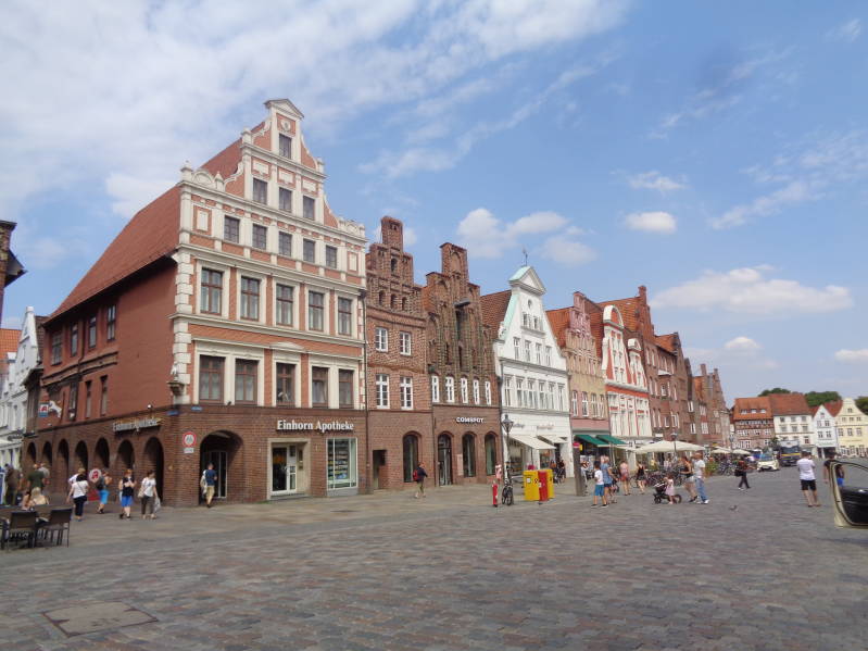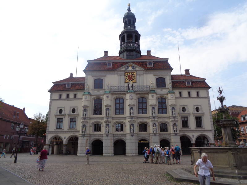Vandaag vertrekken we na een heerlijk ontbijt uit Bremen en nemen daarbij dezelfde weg terug om op de autobahn te komen die we vervolgens 20km volgen richting Hamburg. Daarna gaan we weer de provinciale wegen op om uiteindelijk om half twee aan te komen in Lünenburg waar we al snel een plakje vinden op de camperplaats. Nadat we ons geïnstalleerd hebben wordt de buggy voor Bincky in elkaar gezet en wandelen we naar het centrum . Nadat we in Bremen al zo hadden genoten was het nu in Lünenburg ook weer raak. Het heeft veel oude vakwerkhuizen en een heel mooi raadhuis wat gebouwd is in het jaar 1230. Daarnaast heeft Lünenburg drie kerken die we ook alle drie bezocht hebben. Kortom, we hebben ons prima vermaakt in deze mooie stad en daar waren we ook beslist niet de enige want het was er behoorlijk druk. Tegen het eind van de middag zijn we weer terug gelopen naar de camper. Het was de hele dag al erg warm geweest maar wel zonnig. In de loop van de avond veranderde dat echter, de lucht trok dicht met donkere wolken en er brak een enorm noodweer uit met donder en bliksem. Na twee uurtjes was het leed echter alweer geleden en was het weer droog. Dat was het ook nog toen we tegen 23 uur moe maar voldaan het bed instapten.