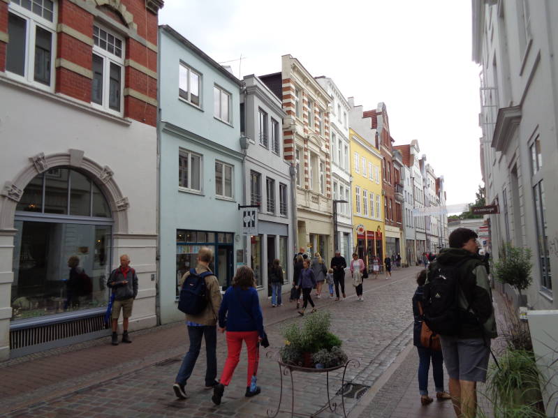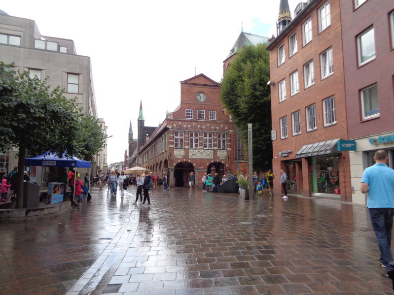 Na een wat luidruchtige nacht, veroorzaakt door de plaatselijke jeugd, stonden we toch weer om half acht naast ons bed. Vandaag rijden we naar Lubeck om deze stad ook eens te bekijken. De reis er naar toe verliep voorspoedig hoewel het ons wel opviel dat de camper wat extra lawaai maakte, een geluid dat ons wel vaag bekend voor kwam. Dat kon wel eens een defect wiellager zijn maar vooralsnog nog geen reden om ongerust te zijn. Onderweg hebben we een tussenstop gemaakt in Ratzberg om op de camperplaats aldaar de camper te verzorgen want de camperplaats in Lubeck had geen voorzieningen. Tegen 13 uur waren we op de camperplaats in Lubeck, waar al een stuk of drie campers stonden, maar er was nog genoeg plaats voor ons. Later op de middag zou deze camperplaats helemaal vol staan. Vandaag hadden we geen best weer, regenbuien met daartussen felle opklaringen. Het hield ons echter niet tegen om de stad in te trekken, Bincky in de overdekte buggy en wij met de paraplu paraat. Het was erg druk in de stad maar dat kwam misschien ook door het jaarlijks terugkerende Duckstein festival waarbij het gaat om eten, drinken, muziek en cultuur. Duckstein bleek overigs een biermerk te zijn. Dan de stad zelf, die daar waren we niet echt van onder de indruk maar dat kwam misschien mede door de talrijke buien waar we mee te maken hadden. s'Avonds klaarde het op en zijn we nog even naar het festival geweest wat wel gezellig was.