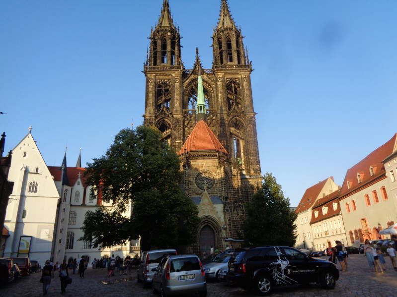 Bij het opstaan scheen de zon alweer volop en konden we ons voorbereiden op weer een tropische dag. Vandaag hadden we een echte reisdag, er moest 171 km afgelegd worden en dat deden we natuurlijk via mooie binnenwegen. Einddoel voor vandaag was de stadje Moritzburg waarbij een mooi kasteel een camperplaats was waar we wilden overnachten. Tegen twee uur waren we ter plaatse en het moet gezegd, het kasteel was prachtig om te zien, over de camperplaats waren we minder te spreken, een grote parkeerplaats waar het overvol met personenauto's stond. We hebben de camper er wel neergezet om daarna het kasteel te bekijken. Het ligt aan een meer en het was er erg druk met toeristen. Je kon om het kasteel heenlopen en dat hebben we gedaan. Daarna zijn we weer terug gelopen naar de camper en besloten we om naar Meissen te rijden waar een camperplaats bij het zwembad zou zijn en waar je mooi op het gras stond, iets wat ons wel aansprak met het zeer warme weer van deze dag. Het zwembad was echter wegens onderhoudswerkzaamheden gesloten en de camperplaats dus ook. Meissen had gelukkig nog meer camperplaatsen en zodoende kwamen we op een camperplaats terecht aan de oever van de Elbe. Met deze plek waren we ook dik tevreden. De rest van de middag hebben we alleen nog aan het water gezeten want het was te warm om wat dan ook te ondernemen. In de avond was het wat afgekoeld en zijn we Meissen gaan bekijken wat een heel stadje is. Aan het eind van de avond werden we door een hotel aan de overkant van de Elbe nog getrakteerd op een mooie vuurwerkshow en toen zat deze dag er ook alweer op.
