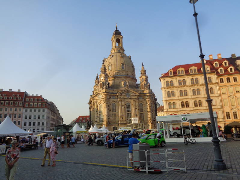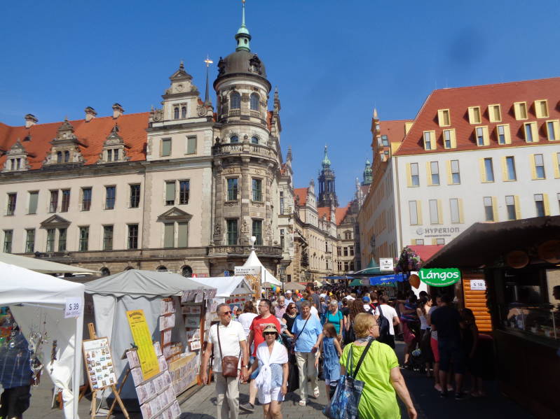 Vandaag zijn we alweer twee weken onderweg, als je eenmaal op pad bent vliegen de dagen om en dat zal vandaag niet anders zijn. Ook over het weer van de afgelopen 14 dagen valt niets te klagen of het zou al moeten zijn dat het wel heel erg warm is. Vandaag schijnt de zon ook al volop als we opstaan en we beginnen rustig aan onze vaste ochtendritueel zijnde Bincky uitlaten en ontbijten. Vandaag rijden we maar een klein stukje want Meissen ligt slechts op 24 km afstand van Dresden en dat is precies de plaats waar we vandaag heen willen. Nog voor elf uur komen we op de camperplaats aan die al behoorlijk vol staat. We komen er al snel achter waar dat door komt, in Dresden wordt dit weekend het grootste stadsfeest van Duitsland gehouden. We horen van een mede camperaar dat daar vorig jaar meer dan 500.000 duizend mensen op af zijn gekomen en dat het heel druk in de stad is. Als we na de koffie het centrum inlopen kunnen we zien we dat daar niets aan gelogen was want het is inderdaad meer dan druk. Het hele centrum staat vol met kraampjes, foodtrucks, attracties en biertapwagens. Allemaal heel gezellig alleen wel jammer dat je daardoor wat minder goed al die mooie oude gebouwen kunt zien waar Dresden rijkelijk is van voorzien. We zijn het snel met elkaar eens, Dresden is echt een prachtige stad. We dwalen uren door de stad aan de Elbe voordat we weer terugkeren naar de camper. Daar drinken en eten we wat en gaan dan tegen zeven uur in de avond opnieuw het centrum in want we willen Dresden ook zien als alles mooi in het kunstlicht staat en we willen het vuurwerk ook niet missen waarmee het stadsfeest wordt afgesloten. We steken via de oude brug de Elbe over en gaan in een biergarten zitten om onder het genot van een pot bier te genieten van het uitzicht van de mooi in het licht staande gebouwen aan de overkant van de Elbe. Om tien uur barst het vuurwerk los en tien minuten later gaan we net als al die duizenden andere mensen huiswaarts en zit de hele mooie dag in Dresden er voor ons op.