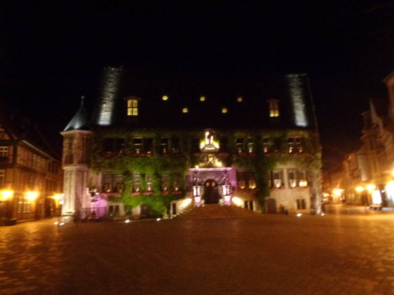 Vandaag is het wisselend bewolkt, droog en een temperatuur van 22 graden, kortom een mooie dag om mooie dingen te gaan bekijken. Voordat we dat doen bezoeken we eerst nog de Lidl in Sangerhausen want de voorraad moet nog een keertje aangevuld worden op deze trip. Ook gooien we de tank nog even vol zodat de dieselmotor weer zijn werk kan doen. Via een heel mooie route rijden we naar Quedlinburg en zetten we de camper op camperplaats die pal naast het centrum ligt van dit oude stadje. Nadat we de elektra hebben aangesloten lopen we het centrum in en kunnen we genieten van al die vakwerkhuizen die hier in grote getale staan. Ook lopen we nog naar de hoger gelegen burcht en genieten we van het uitzicht op Quedlinburg. Daarna zoeken we de camper op om wat te eten en lopen daarna weer het stadje in. Als het begint de schemeren bewonderen we het mooi aangelichte stadhuis en zoeken we daarna de camper weer op waar we nog wat tv kijken en ons willen douchen voordat we het vermoeide lijf weer te rusten leggen. Dus de boiler aangezet en op een gegeven moment hoorden we een hard geluid en zag Ria het water over de vloer lopen. Snel de boiler uit gezet en toen op zoek gegaan naar de de oorzaak. Het bleek dar er een waterslangetje bij de boiler was losgeschoten. Nadat het euvel verholpen was konden we alsnog douchen en daarna fris en fruitig gaan slapen.
