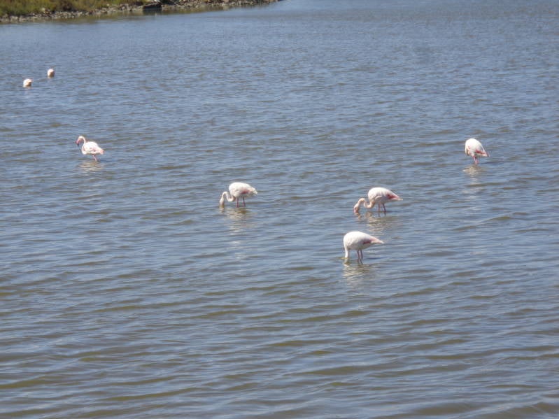 Als we vanmorgen opstaan zien we een strak blauwe lucht en schijnt de zon al volop. Wel waait het behoorlijk maar dat houdt ons niet tegen om de fietsen van het rek te halen om een stuk de Carmargue in te rijden. Onze eerste stop is echter een groot stuk verlaten strand waar Bincky zich eens lekker kan laten gaan want hij vind niets zo lekker als op het strand rond te rennen om vervolgens een mooi gat te graven waar hij even kan slapen na al dat geren. Wij vonden dat prima want het was op een beschut plekje tegen de duinenrand heel goed uit houden op het strand. Voor we het wisten waren we zo een paar uur verder dus zijn we uiteindelijk weer op de fiets gestapt om onze tocht te vervolgen. Onderweg zagen we een geul waar veel zout in lag, het was dus al tijden behoorlijk droog geweest in de Camargue. H et volgende doel was Le phare de la Gacholle, een oud vuurtorentje uit 1882. Daarna ging het weer richting Saintes Maries de la Mer en hebben we onderweg nog de nodige flamigo's gespot en ook nog een twee paarden die echter niet wild waren maar tammer dan tam. Je ziet trouwens in de Camargue ook hele groepen op paarden door het landschap trekken. Al met al was deze mooie dag weer snel voorbij, morgen gaan we weer terug naar Marseiland Place, dus weer een reisdagje voor de boeg.