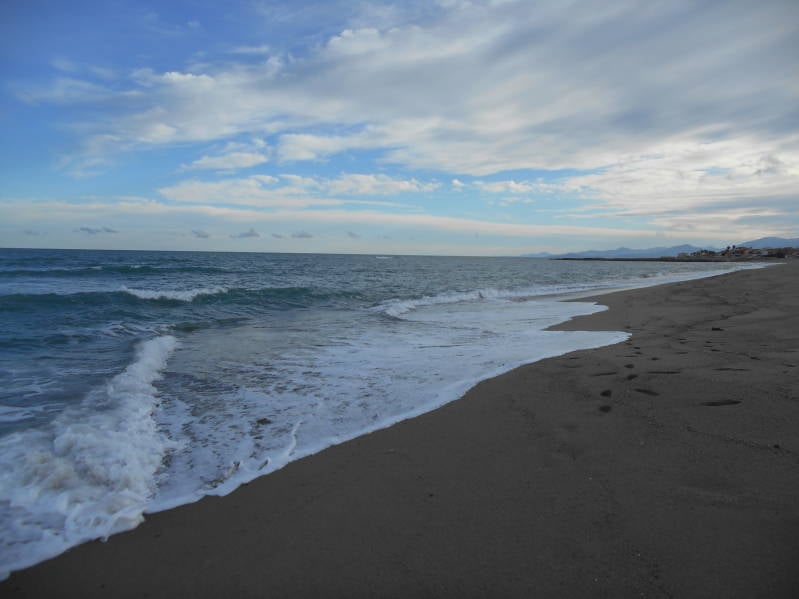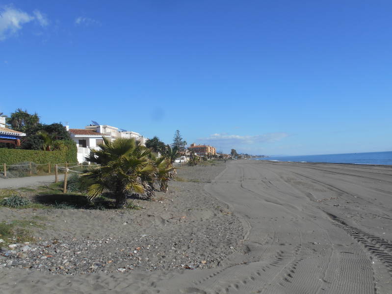 Na een rustige nacht en een uitgebreid zondagsontbijt hebben we nog wat zitten lezen onder het genot van een kopje koffie. Het was bij het opstaan zwaar bewolkt maar dat trok tegen de middag allemaal weg en werd het weer onbewolkt en zonnig. Tijd om de wandelschoenen aan te trekken voor een wandeling over de uitgestrekte boulevard. Als je wilt kun je helemaal doorlopen tot in Marbella maar dat was ons toch wat te ver. Al met al hebben we zo'n 8 km gelopen en toen vonden we het welletjes en zijn we terug gegaan naar de camper voor een welverdiend biertje cq wijntje. De dag verliep verder in alle rust alleen af en toe onderbroken om Bincky even de pootjes te laten strekken.