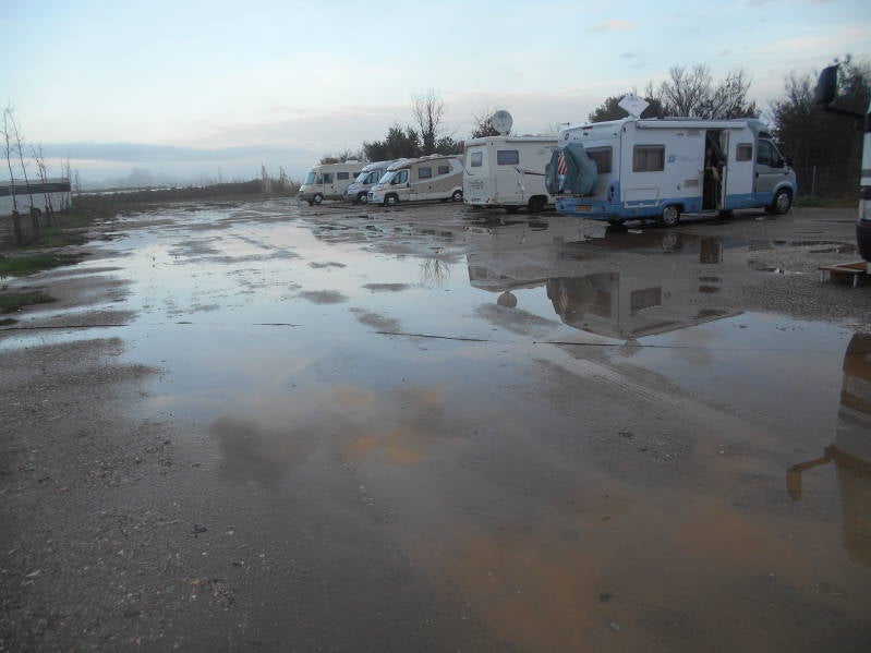 Na een nacht met veel regen vertrokken we na het ontbijt naar onze volgende bestemming, camping Mar Menor welke vlakbij Los Alcazáres ligt een plaatsje aan de kust. Het was een mooie rit door de bergen en had nog mooier kunnen zijn als het niet zo had geregend. We hebben in El Castell de Goudalest een stop gemaakt en de bedoeling was om dit mooie bergdorp te gaan bekijken, we zijn echter niet de camper uit geweest want het regende te hard. Dus door naar de kust waar het niet veel beter werd wat het weer betreft. Door de regen ontstonden grote plassen op de weg wat soms enorme fonteinen water deed opspatten en ook werd het zicht steeds minder. We waren dan ook blij dat we tegen het eind van de middag bijna op onze bestemming waren waar we echter zagen dat de afslag naar de camping was afgesloten, dat beloofde niet veel goeds. In Los Alcazáres heb je sinds enige jaren ook een camperplaats en dus zat er niets anders op om te kijken of ze daar nog een plekje vrij hadden voor ons en dat was gelukkig het geval. Nadat we ons geïnstalleerd hadden was het verplicht binnen zitten want de regen kwam nog steeds met bakken uit de lucht. Tegen 20.15 uur regende het even iets minder dus besloten we om nu maar even snel Bincky uit laten. Ver kwamen we niet want de straat die voor de camperplaats was veranderd in een kolkende rivier waarbij het water hoog uit de rioleringsputten kwam. Nadat Bincky een paar plasjes had gedaan zijn we weer snel naar de camper terug gelopen en waren we nog maar amper binnen toen een geweldig noodweer los barstte. Nu zijn we helemaal niet bang aangelegd maar dit keer zaten we toch wel een beetje angstig naar al dat geweld te luisteren en vroegen we ons af of onze dakluiken het wel zouden houden door de slagregen die overging in hagel. Met een enorme knal sloeg ergens zeer dicht in de buurt de bliksem in en viel de elektriciteit uit. Het noodweer hield tot twee uur in de nacht aan en daarna werd het rustiger en konden we eindelijk een poging doen om een paar uurtjes te gaan slapen en waren we benieuwd hoe de dag van morgen er uit zou zien.