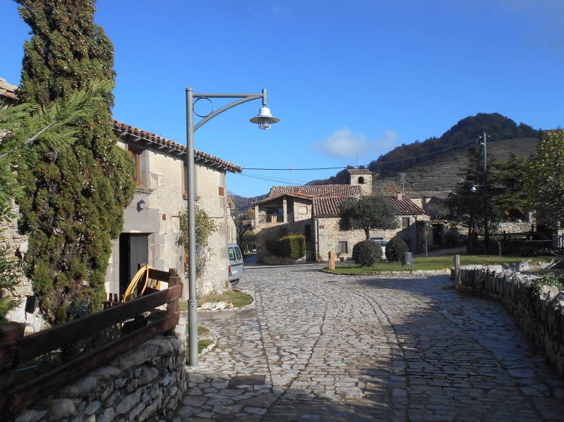 Vandaag merken we niets van het feit dat het de verjaardag van Sinterklaas is, niet zo verwonderlijk want hij zit momenteel in Nederland en dus niet in Spanje. Wij zitten wel in Spanje maar het zou vandaag ook zomaar Nederland kunnen zijn want het regende bij het opstaan de dat zou het ook vrijwel de hele dag blijven doen. Vandaag stond er een reisdag op het programma en na het ontbijt verlieten we dan ook Palamos maar niet voordat we de voorraad eten hadden aangevuld bij de Lidl want we gingen tenslotte de bergen in en dan weet je het maar nooit. Deze overwintering hadden we er voor gekozen om zo af en toe ook eens het achterland in te rijden en niet steeds de kust te volgen zoals we voorgaande jaren hadden gedaan. Ons oog was dan ook gevallen op Tavertet een oud dorpje op een hoog rotsplateau. De weg er naar toe was fabelachtig mooi en het was dan ook jammer dat we zoveel regen hadden maar goed daar was niets aan te doen. Eenmaal op de camperplaats in Tavertet aangekomen was het iets opgeklaard en hadden we een mooi uitzicht op de bergen. Wel was het hier wat frisser dus snel de camper aan de stroompaal en het kacheltje aan. Morgen hopen we wat beter weer te hebben want dan willen we de omgeving verkennen.