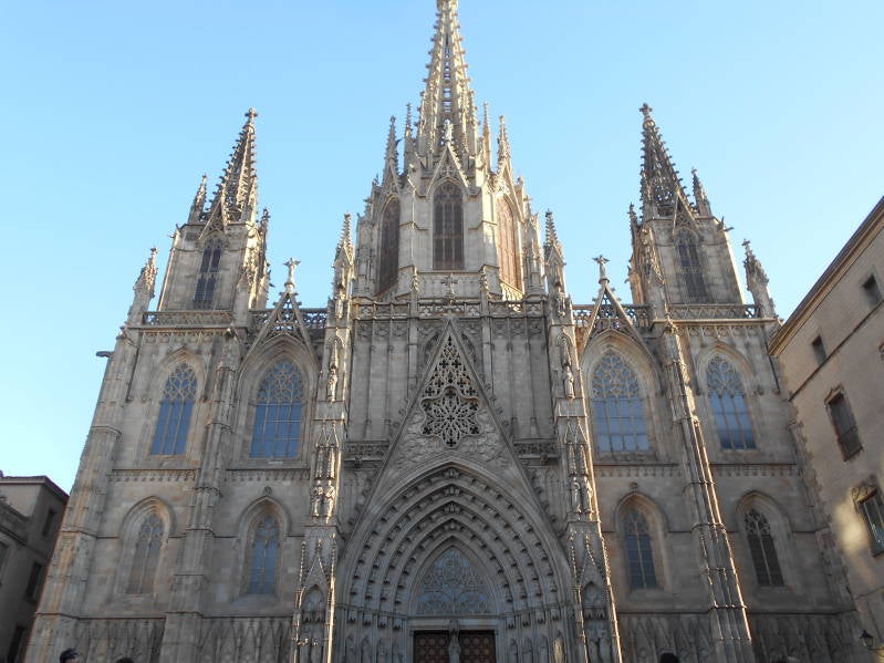 Vandaag waren we vroeg uit de veren want de dag stond in het teken van sightseeing Barcelona. We zijn al in veel grote plaatsen geweest in Spanje maar Barcelona ontbrak nog dus vandaag moest het maar eens van komen. Na het ontbijt zijn we meteen vertrokken en omdat we slechts 30 km hoefden te rijden reden we nog voor tien uur de beveiligde parkeerplaats in Barcelona op waar een speciaal gedeelte was afgezet voor campers. We waren hier beslist niet de enige camper want er stonden er al tientallen. Nadat we ons op de aangegeven plaats nummer 17 hadden geïnstalleerd hebben we eerst een kop koffie gedronken om daarna de fietsen van het rek te halen. Vandaag liet het weer zich ook weer van zijn beste kant zien, een blauwe hemel en een lekker temperstuurtje. De was de bedoeling om op de fiets naar het centrum te gaan wat ongeveer 6,5 km fietsen was, daar de fietsen ergens neer te zetten en het centrum verder te voet te verkennen. Zo gezegd zo gedaan. Op de fiets kwamen we al snel de eerste toeristische attractie tegen namelijk de Sagrada Familia, waar het ontzettend druk was. We keken met gemengde gevoelens naar deze nog steeds in aanbouw zijnde kerk. Wat ons wat tegenstond waren de verschillende stijlen waarin de kerk vorm krijgt, het begin van de bouw in Gaudi stijl, wat we heel mooi vonden, tot de hele moderne stijl waar ze nu mee bezig zijn, iets wat we wat minder mooi vonden. De kerk hebben we niet van binnen gezien omdat er zeer lange wachttijden waren en we ook nog wel meer wilden zien van Barcelona. Dus weer op de fiets gestapt om richting het centrum te fietsen. Het moet gezegd worden, Barcelona is een zeer fietsvriendelijke stad met veel gescheiden fietsbanen wat je wel een veilig gevoel geeft in het hectische verkeer.