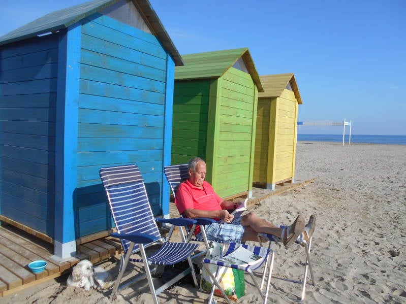 Vandaag onze eerste volle dag op camping Mar Manor en dus gaan we na het ontbijt eerst maar eens de camper wat kuizen. Daarna gaat vrouwlief aan de was en gooi ik ondertussen de friswatertank weer helemaal vol. Ook maak ik de grijswatertank leeg door op mijn gemak telkens een emmervol grijs afvalwater af te tappen om die vervolgens bij de verzorgingsplaats te ledigen. Natuurlijk kun je dat ook doen door er even met de camper heen te rijden maar we hebben vakantie en plenty tijd en daarnaast kun je onderweg ook nog eens een praatje maken met deze of gene. Nadat we beiden met onze werkzaamheden klaar waren kon het echte werk beginnen en dat houdt in lekker in de zon zitten met een kop koffie en een leesboek en verder niet veel meer doen. Moet wel gezegd worden dat het weer er dan ook naar was, onbewolkt en 23 graden, wat wil een mensen nog meer? Helemaal niets!!