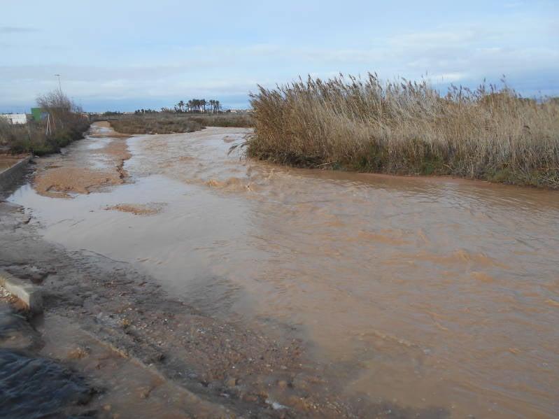 Toegangsweg en fietspad naar camping Mar Menor onbegaanbaar.
