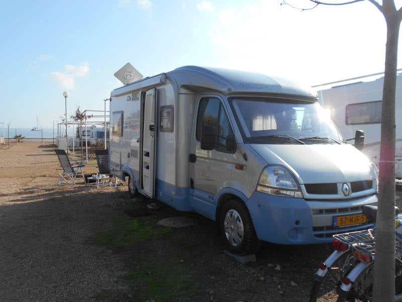 We zijn de A75 weer opgereden om uiteindelijk terecht te komen in Sainte Marie La Mer waar we al snel een plaatsje vonden op het achterste deel van de camperplaats, het voorste gedeelte stond al vol met campers. Nadat we ons geïnstalleerd hadden was het theetijd en daarna konden de wandelschoenen aan want de naam van het plaatsje zegt het al, we waren inmiddels bij de Middellandse zee aanbeland! Na ongeveer 20 minuten wandelen waren we op het strand waar Bincky zich even lekker kon uitleven want die vind het geweldig op het strand. Wat het weer betreft hadden we het geluk nu eens aan onze kant want dat was duidelijk opgeknapt, we zagen eindelijk weer eens een blauwe lucht en zelfs de zon. Nadat Bicnky uitgeraasd was zijn we weer terug gelopen naar de camper en hebben we de rest van de dag en avond in alle rust doorgebracht. Als morgen het weer het toelaat gaan de fietsen van het rek om Perpignan te bezoeken.