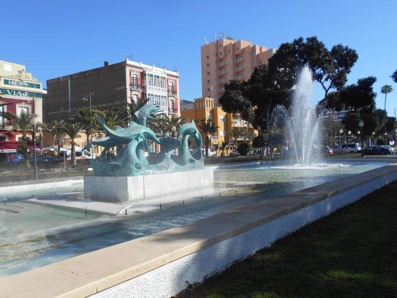 Na de dagelijkse ochtendrituelen zijn we de boulevard weer opgelopen want we waren gisteren niet tot aan het eind van de boulevard gelopen, daarnaast wilde we ook wel wat meer zien van het centrum van Almeria. Het was gezellig druk op de boulevard en ook in de stad. Het centrum van Almeria viel ons niet tegen, er is veel beeldende kunst te zien en ook vindt je er aardig wat fraaie bouwwerken en uiteraard dezelfde winkels die je overal ziet in de wat grotere steden. Naar een paar uur hadden we het wel gezien en zijn we terug gelopen naar de camper om na een kop koffie naar onze volgende doel te rijden de kustplaats Almerimar. De rit verloopt wat moeizaam want ik raak de weg weer eens kwijt maar uiteindelijk komen achter in de middag op de nieuwe camperplaats aan. Naast ons op de cp staat een Nederlands stel waar we al snel contact mee hebben en waar we wat informatie mee uitwisselen. Hoewel er op de cp plenty ruimte is vond een Duitser het toch nodig zijn camper tussen die van mij en een andere Duitse camper te proppen, dat worden dus geen vrienden van ons. We blijven ons verbazen over dit soort toestanden en vragen we ons af wat zulke mensen bezield om dit soort dingen te doen. Het is trouwens niet de eerste keer dat ons zoiets overkomt.