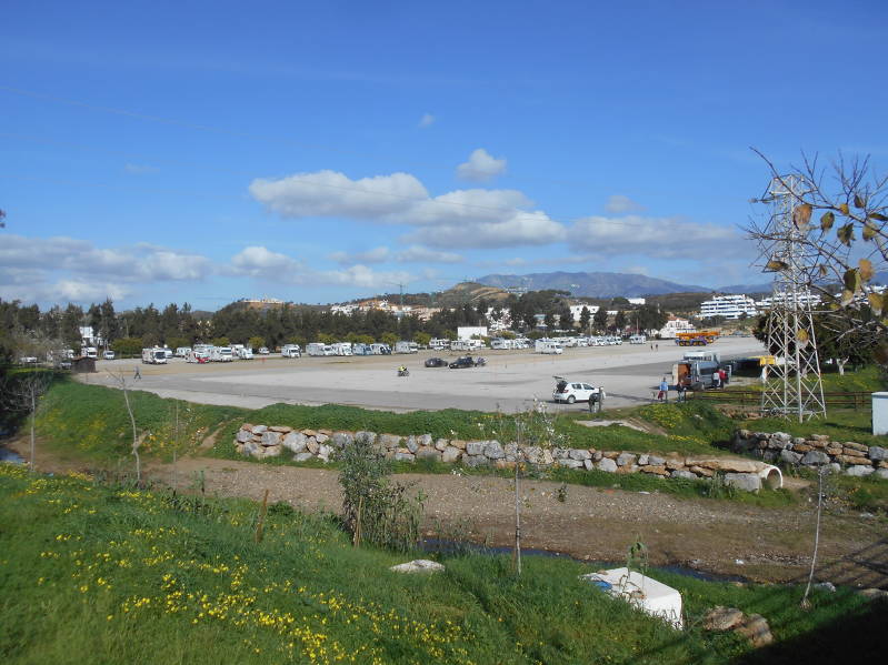Drukte op de camperplaats van La Cala de Mijas.