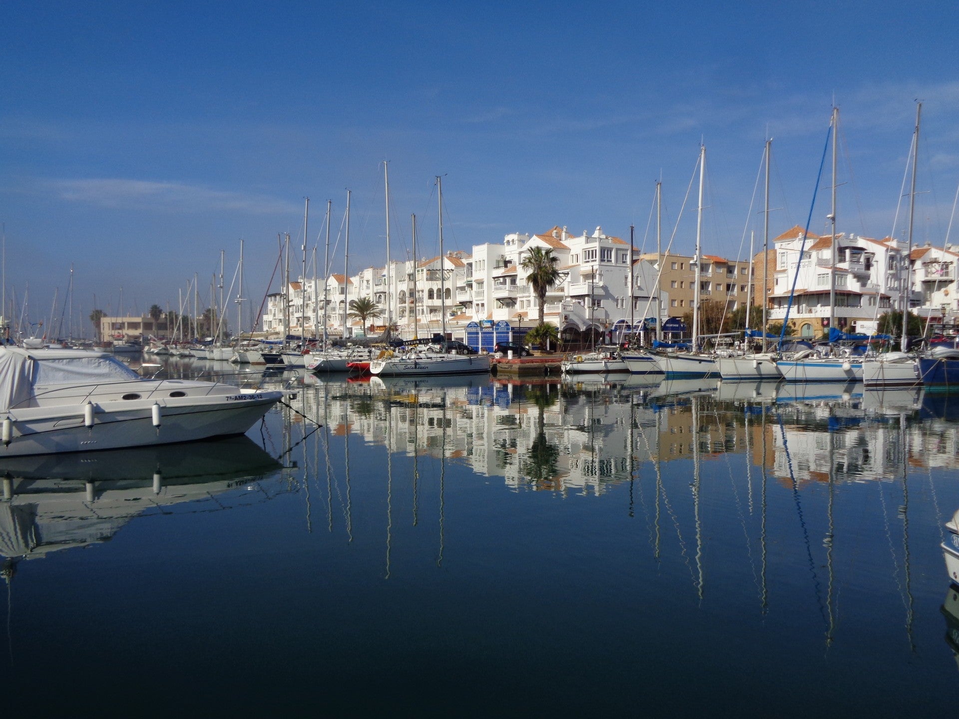 Vandaag schijnt de zon en is de hemel weer mooi blauw maar tijdens de hele dag krijgen we last van een ander fenomeen namelijk zeevlam, een plotseling opkomende mist vanuit zee. Voordat we op de fiets stappen om weer naar het centrum van Almerimar te fietsen gaat vrouwlief eerst aan de was met de hoop dat het drogen niet te veel hinder ondervindt van de zeevlam. In Alemerimar aangekomen is het weer daar prima en hebben we geen last van zeevlam. Het is druk in het stadje waar wij ook een paar dingen kopen in een Chineese bazar. Daarna lopen we naar de gezellige haven en genieten we van het uitzicht op een van de vele bankjes aan de boulevard. Tegen vijf uur fietsen we weer terug naar de camperplaats waar Ria vaststelt dat de was nog lang niet droog is, Dat maakt echter niets uit want morgen staan we hier ook nog de hele dag en er wordt mooi weer voorspelt dus dan zal de was zeker droog worden. In de avond willen we tv gaan kijken maar dat lukt niet want er zit te veel condens op de vlakschotel waardoor we geen ontvangst hebben. Achteraf zou blijken dat dit de voorbode zou zijn van veel technische ellende waar we deze reis mee te maken zouden krijgen.